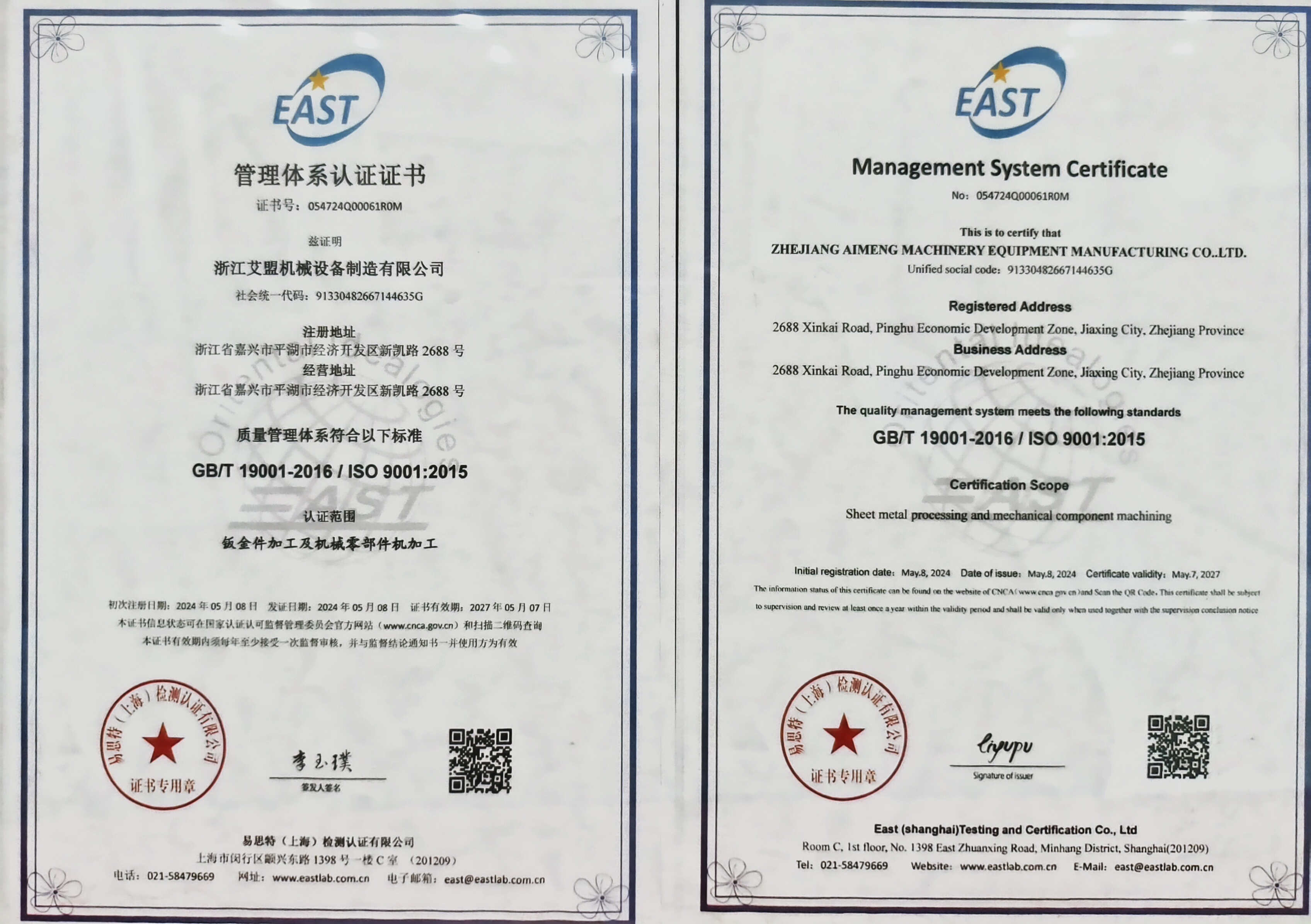 管理体系认证证书